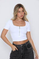 חולצה פתח מרובע שילוב רוכסן לייקרה רכה ויוקרתית עם מתיחה טבעית המבטיחה התאמה מושלמת לגוף.
