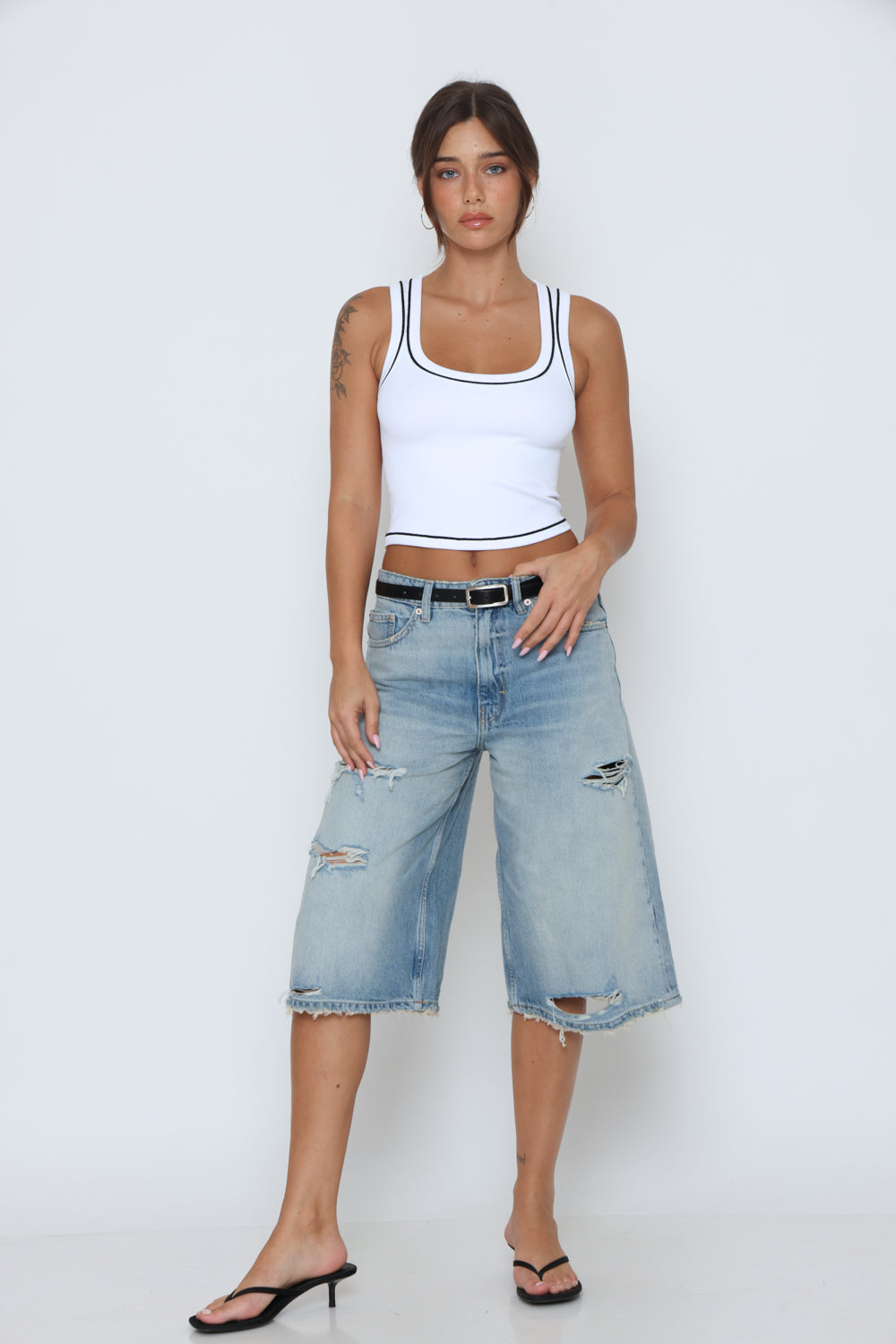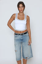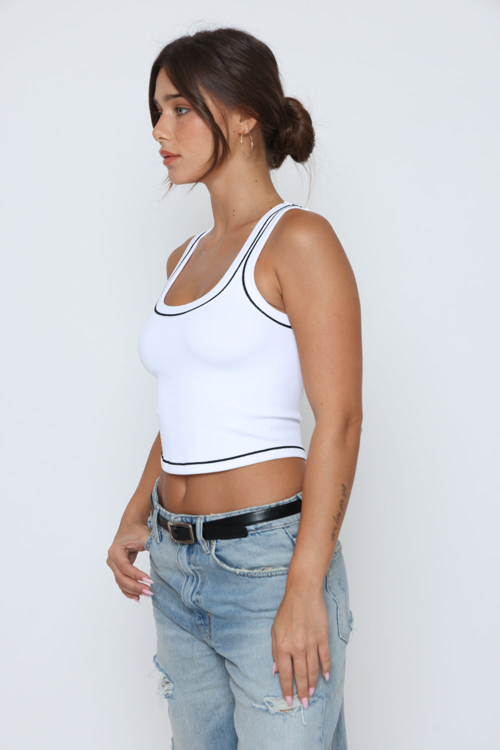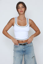 גופיה כתפיה רחבה פס בלבן בגזרה קלאסית עשויה מלייקרה איכותית, המשלבת בין אלסטיות לעיצוב מחמיא.