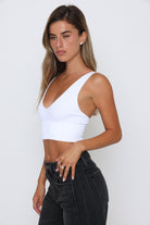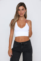 טופ ריב בטן וי בגזרה קלאסית עשויה משילוב לייקרה איכותית, המשלבת בין אלסטיות לעיצוב מחמיא.