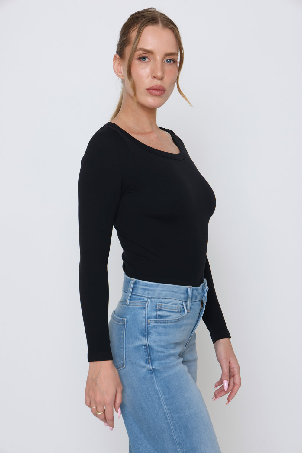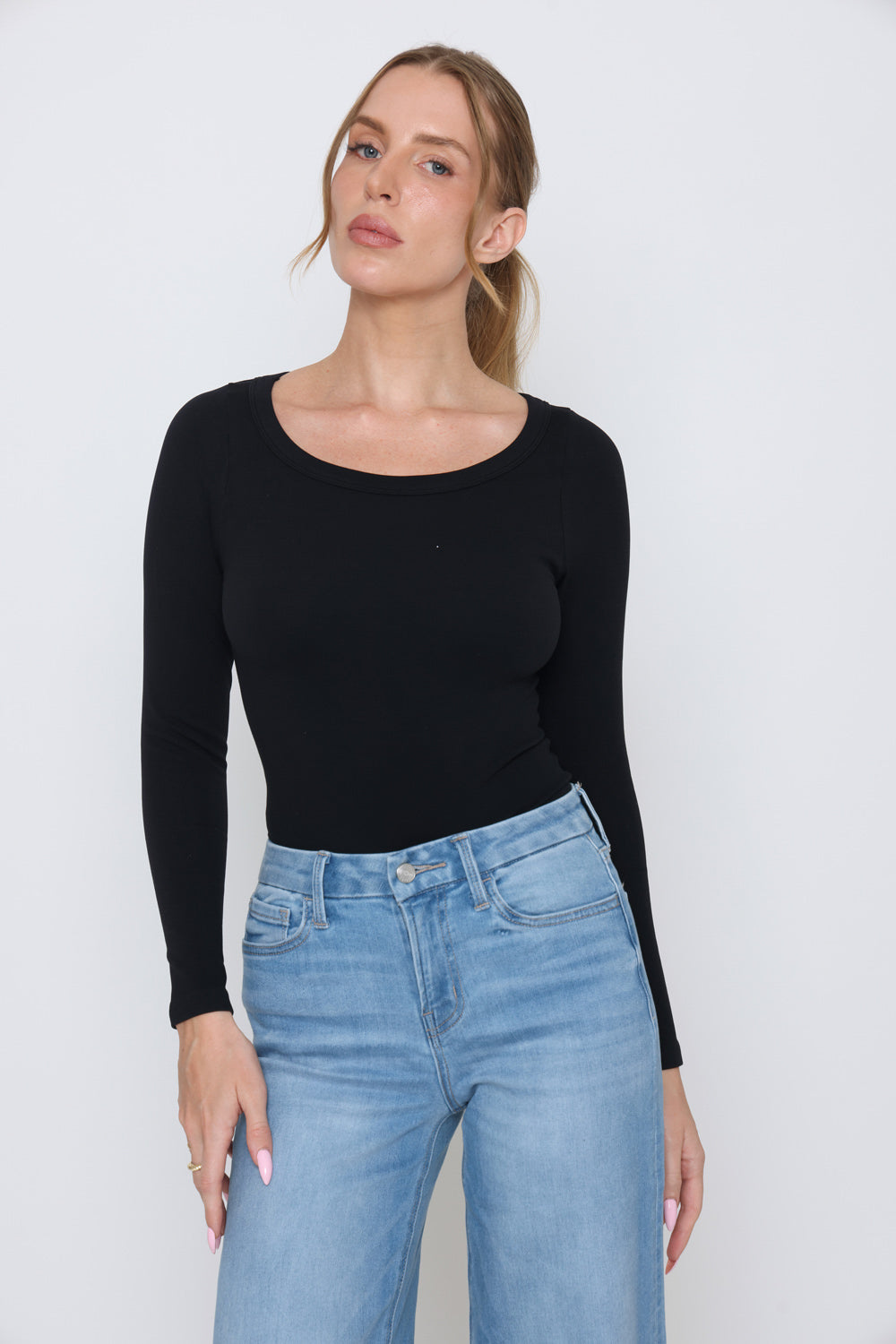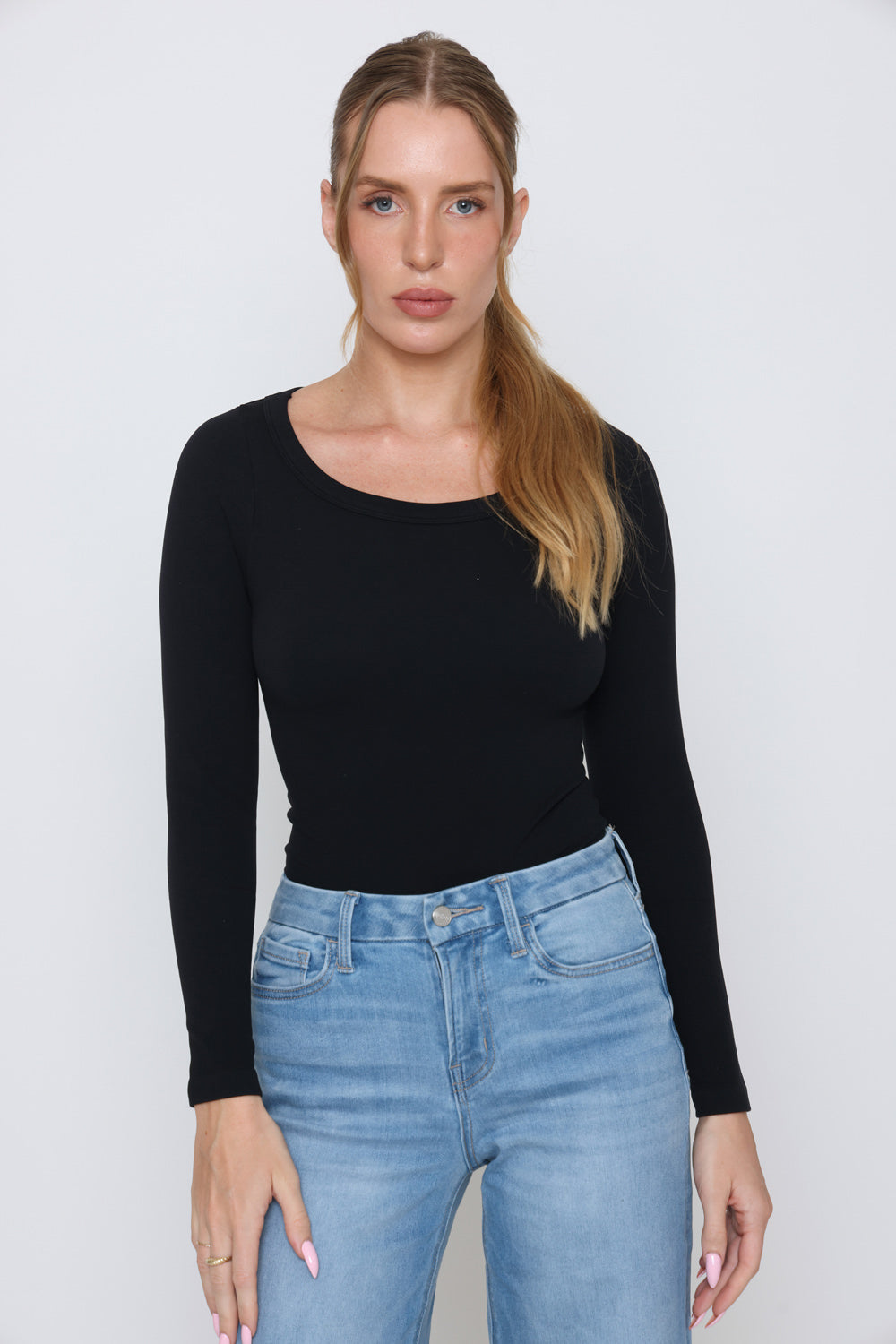חולצה שרוול ארוך ביסייק פתח מעוגל עשוי מלייקרה איכותית עם מתיחה עדינה שמעניקה נוחות וגזרה מחמיאה.