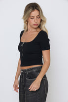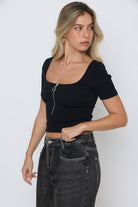 חולצה פתח מרובע שילוב רוכסן לייקרה רכה ויוקרתית עם מתיחה טבעית המבטיחה התאמה מושלמת לגוף.