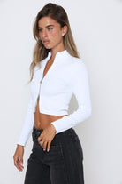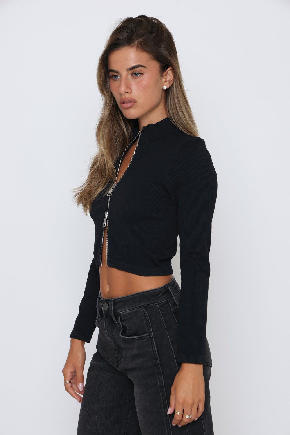 חולצה שרוול ארוך דאבל רוכסן עשויה ריב בשילוב לייקרה איכותית ורכה בגימור מוקפד המדגיש את קווי הגוף בצורה מחמיאה.