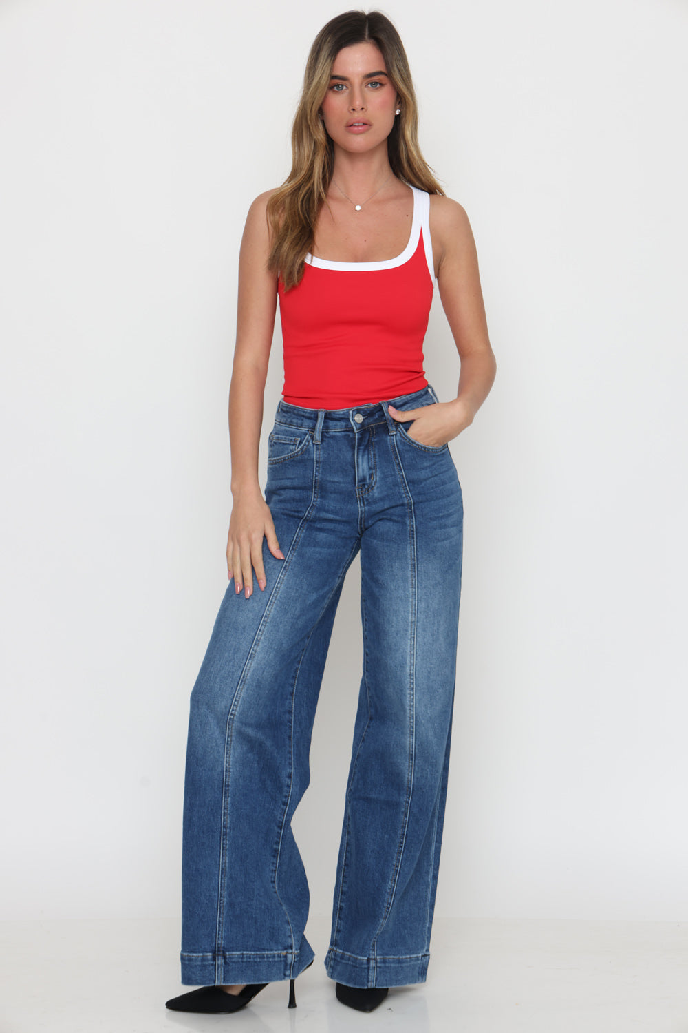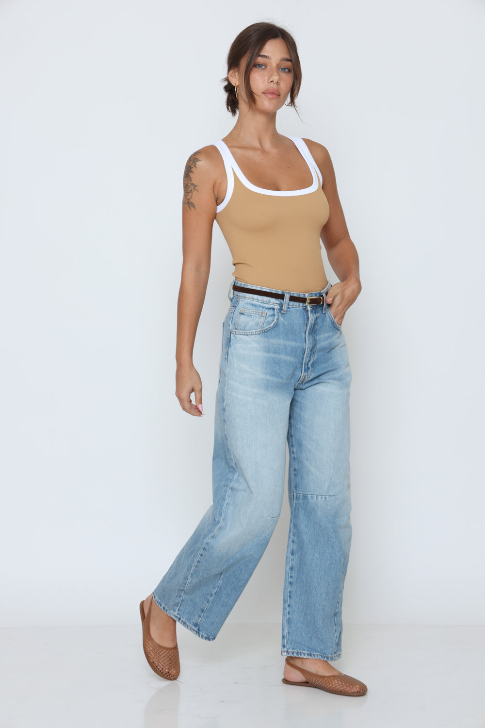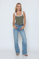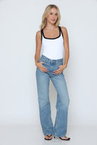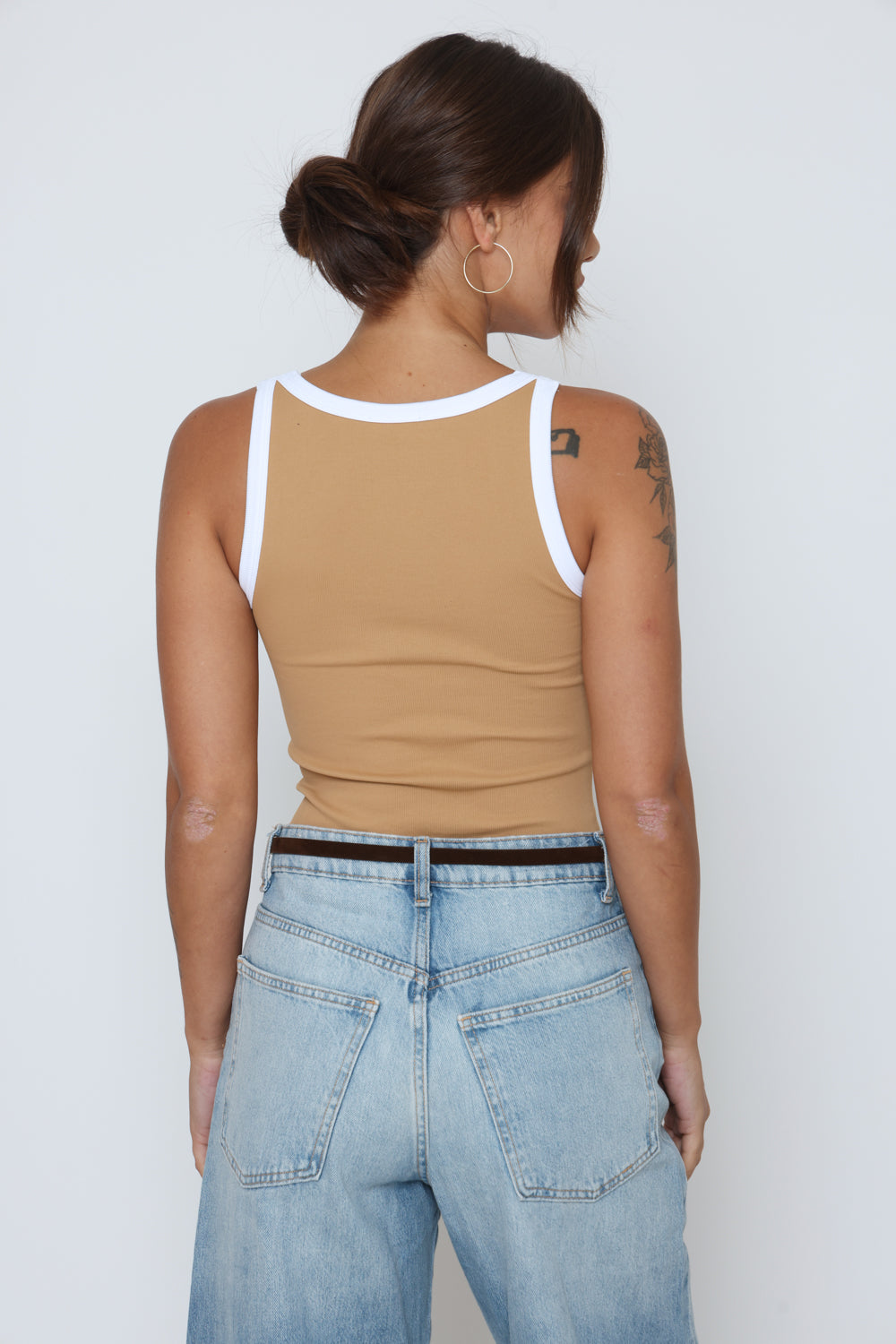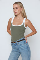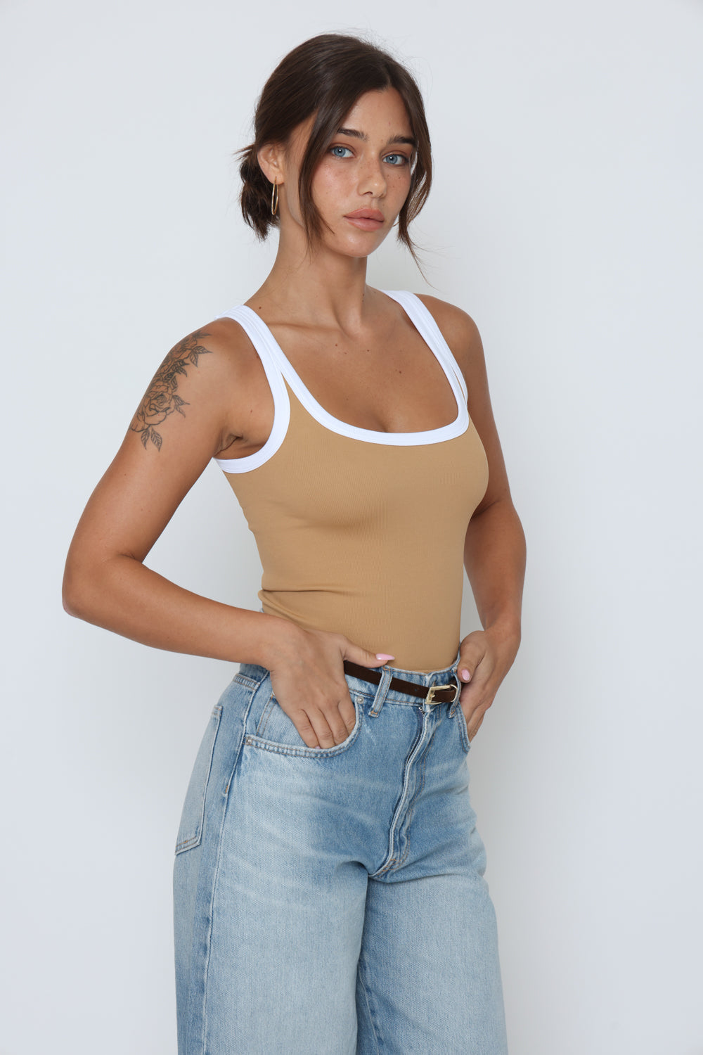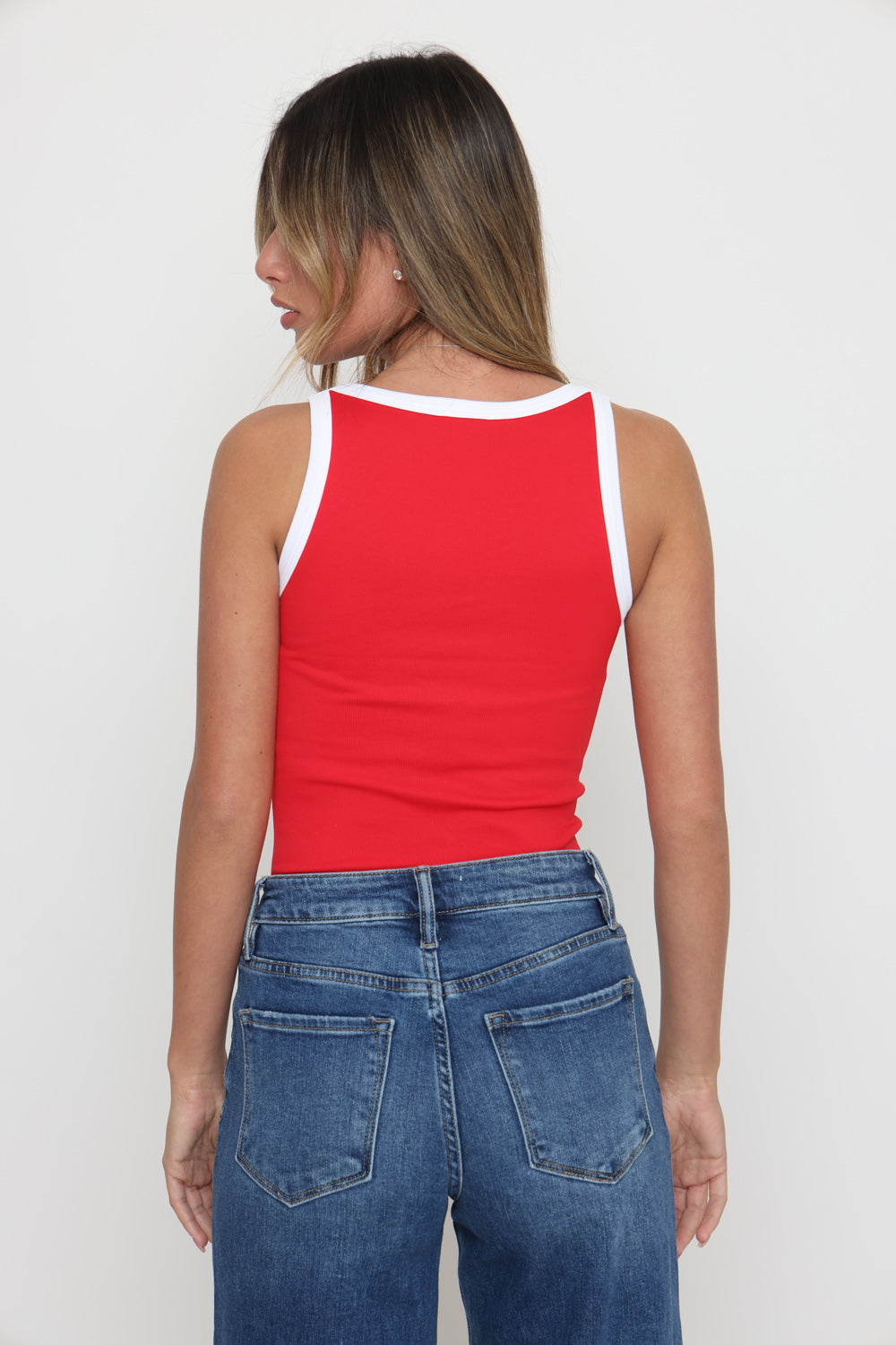 גופיה פס לבן גב סגור עשוי מלייקרה איכותית עם מתיחה עדינה שמעניקה נוחות וגזרה מחמיאה.