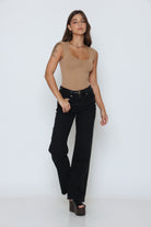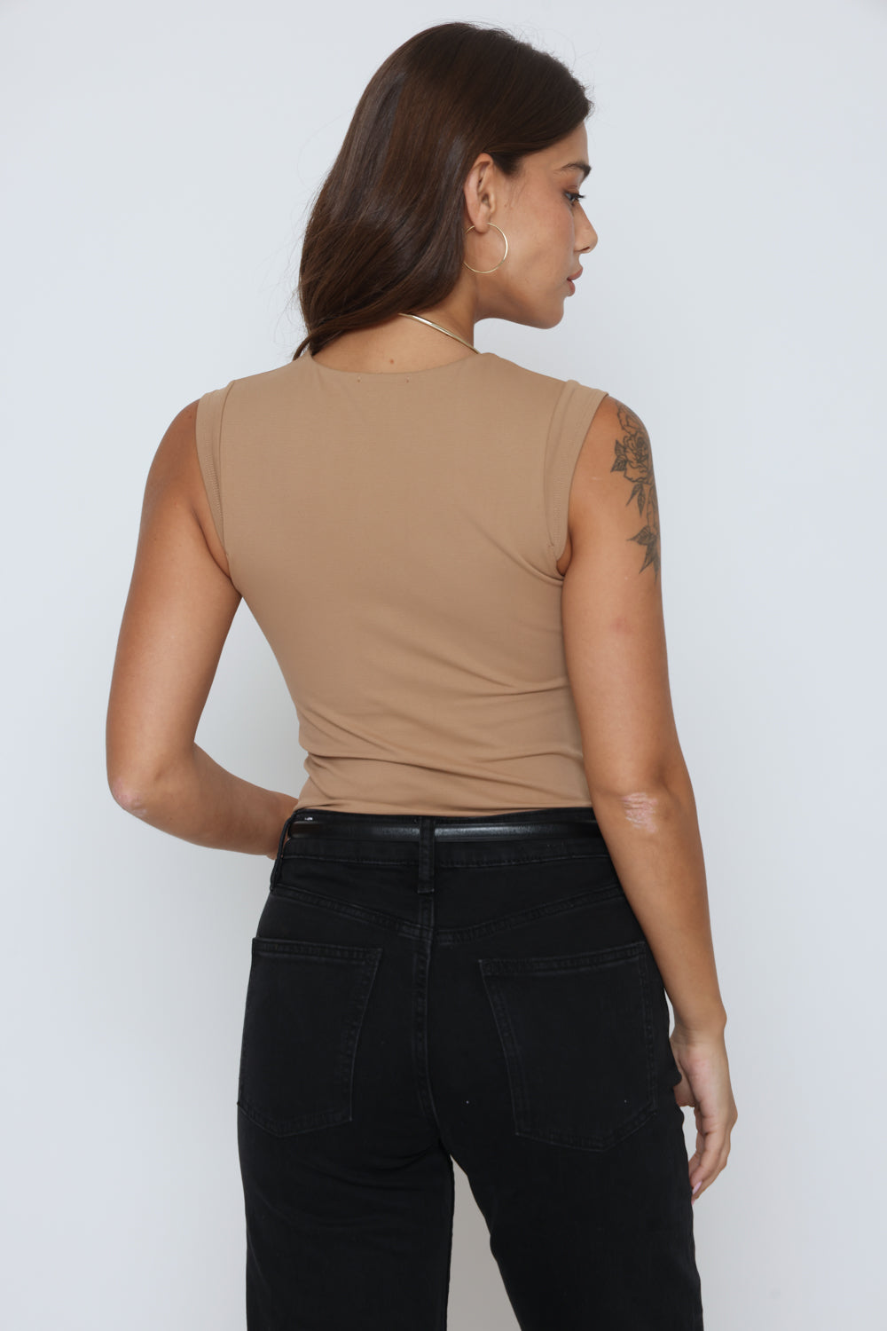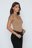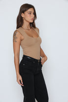בגד גוף שרוול קטן +כיווץ בד כפול מעוצב בלייקרה איכותית וגמישה לנוחות לאורך כל היום ולמראה מוקפד.