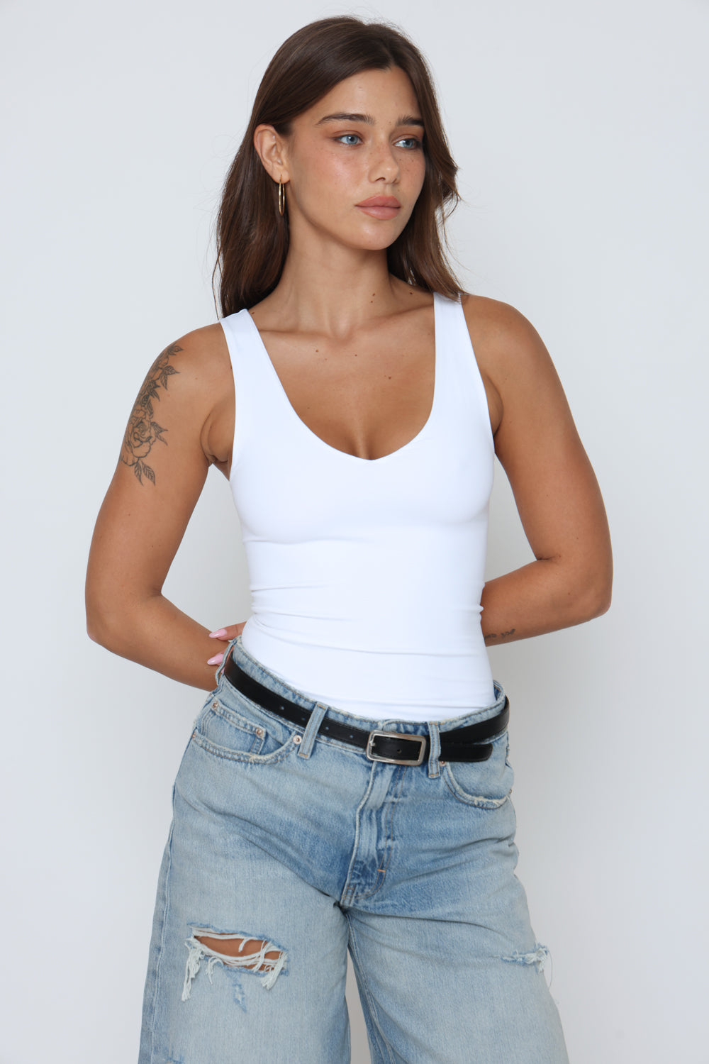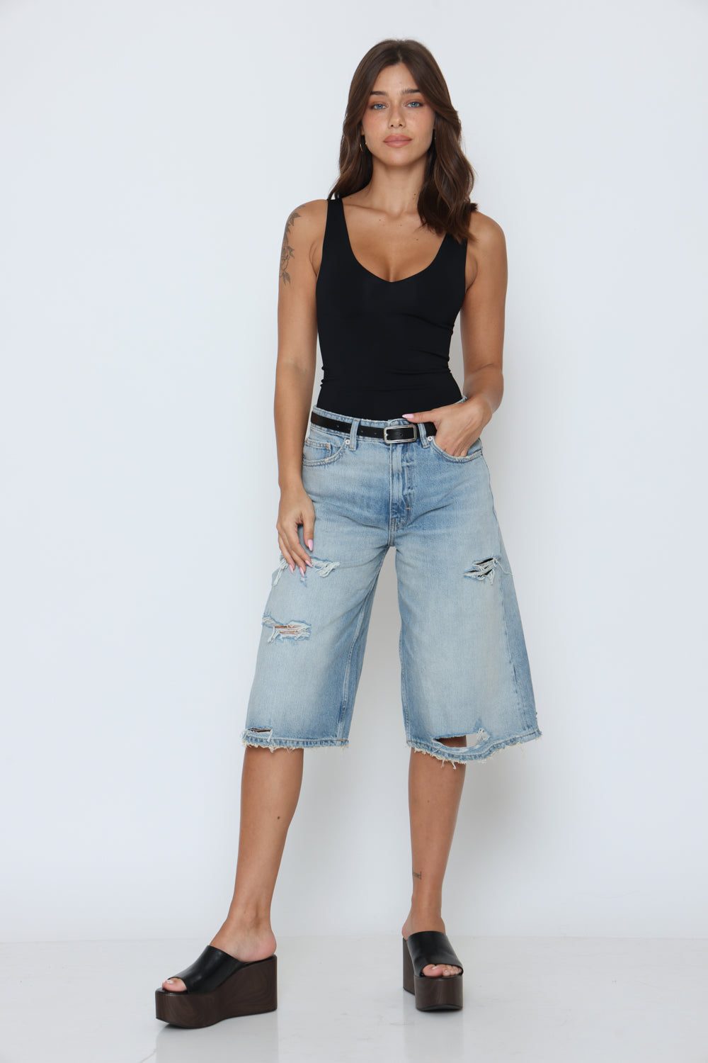 בגד גוף וי בגב + וי מקדימה עשוי מלייקרה יוקרתית עם מתיחה אלסטית לנוחות בלתי מתפשרת ומראה אלגנטי.