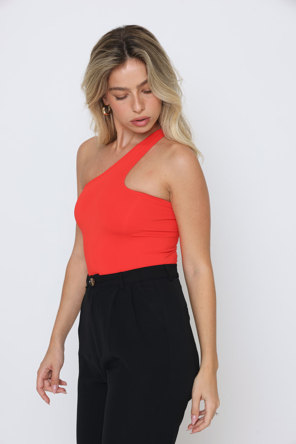 בגד גוף כתף אלכסון בד כפול לייקרה רכה ויוקרתית עם מתיחה טבעית המבטיחה התאמה מושלמת לגוף.