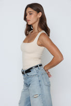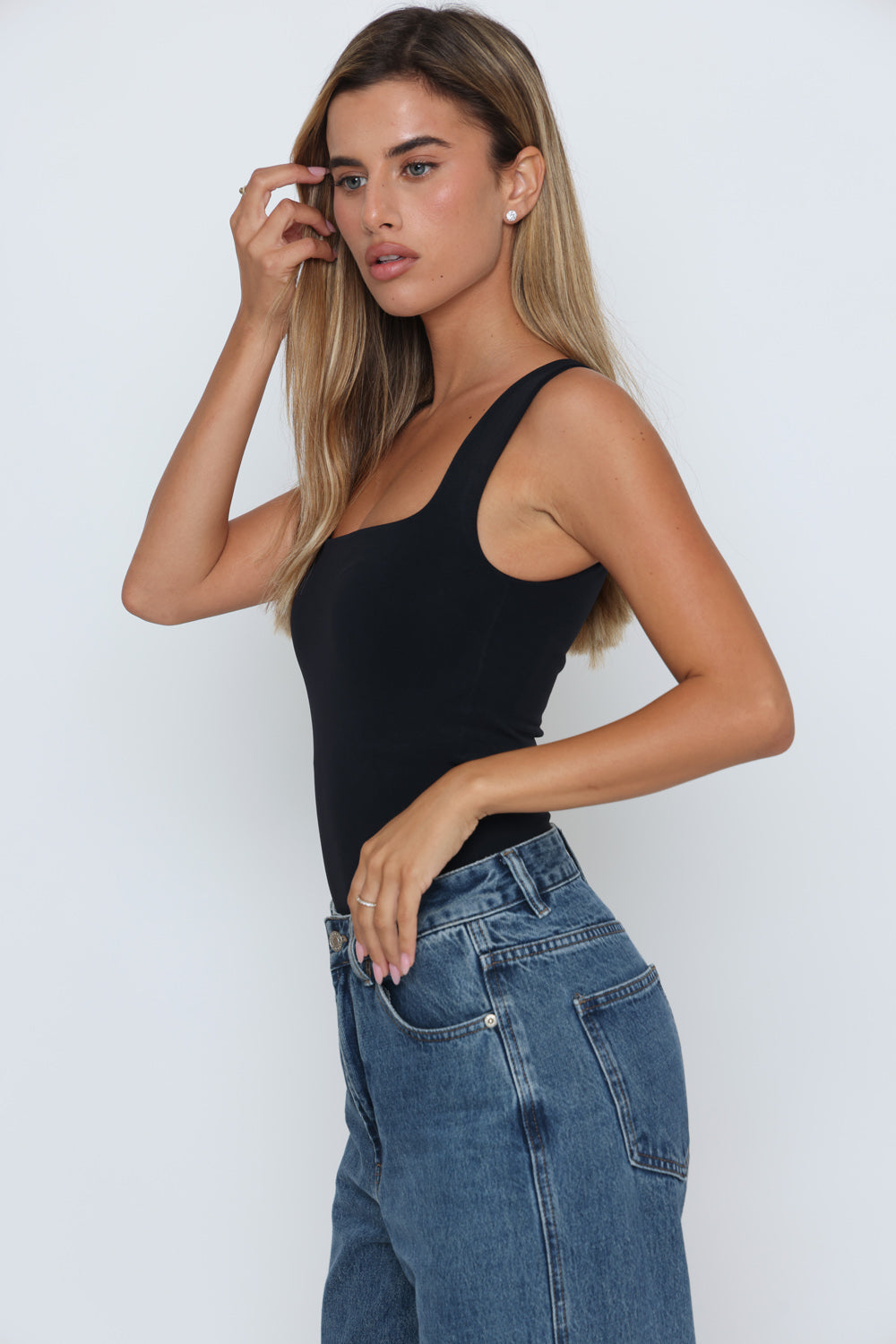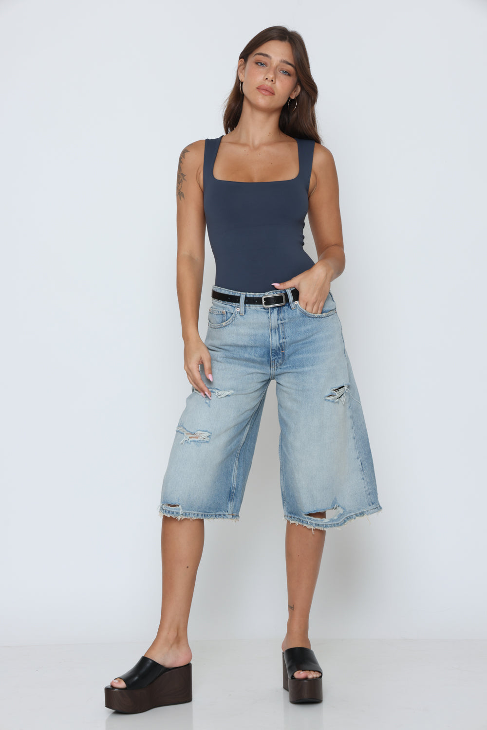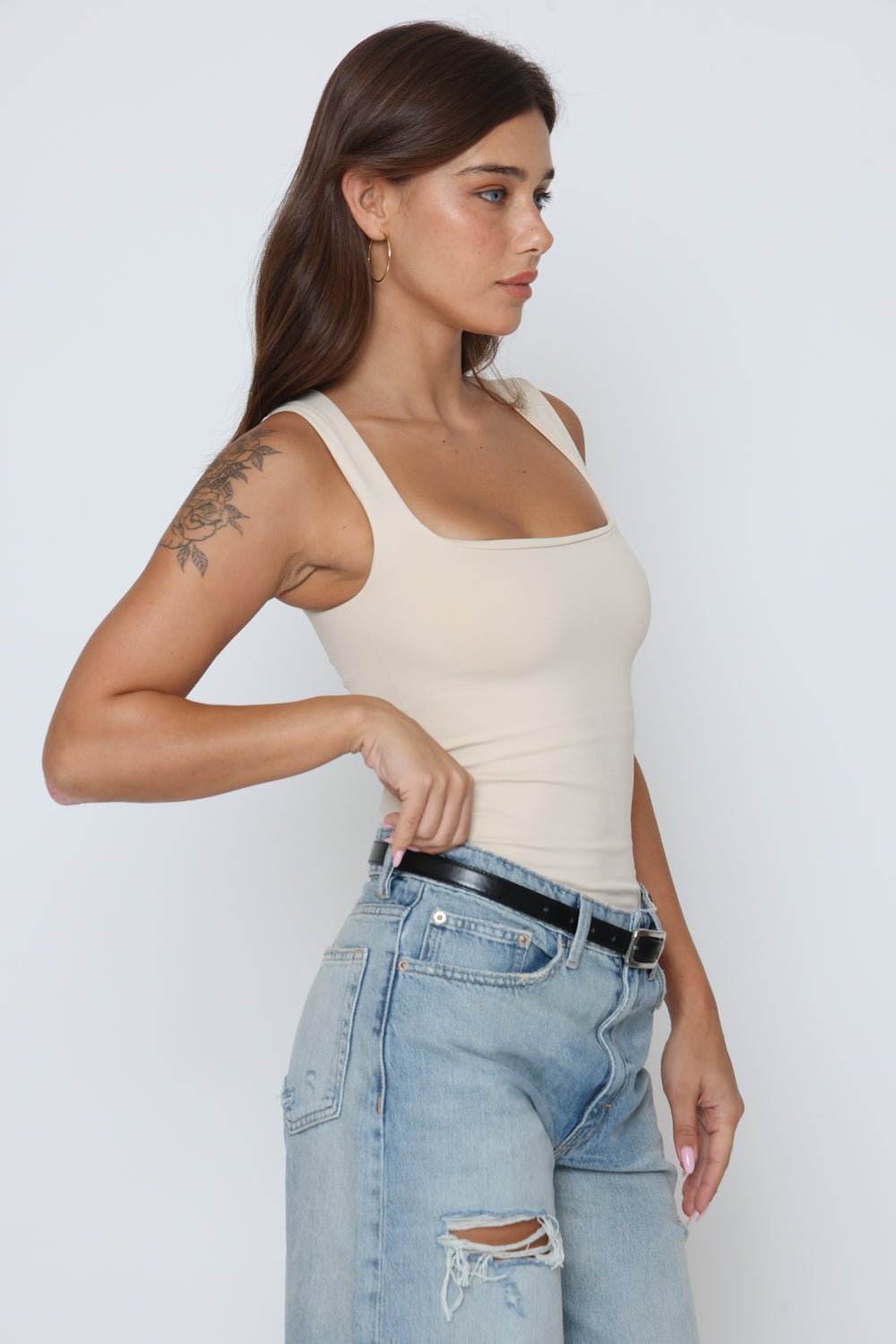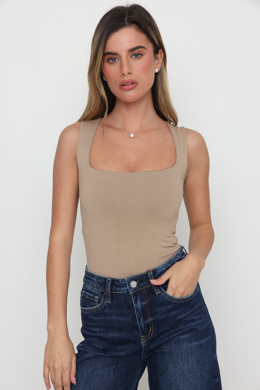 בגד גוף פתח מרובע בד כפול בד לייקרה איכותי במרקם רך וגמיש, מעניק תחושה יוקרתית ונוחות מרבית.
