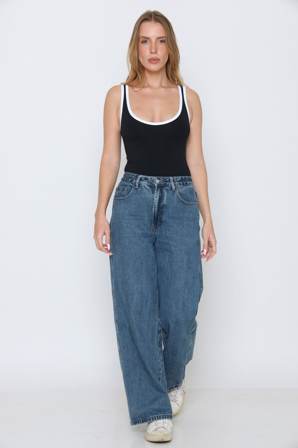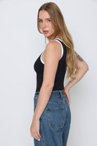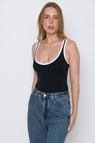 בגד גוף וי פס לבן בבד לייקרה יוקרתי ורך למגע, בעל אלסטיות מושלמת ותמיכה מחמיאה.