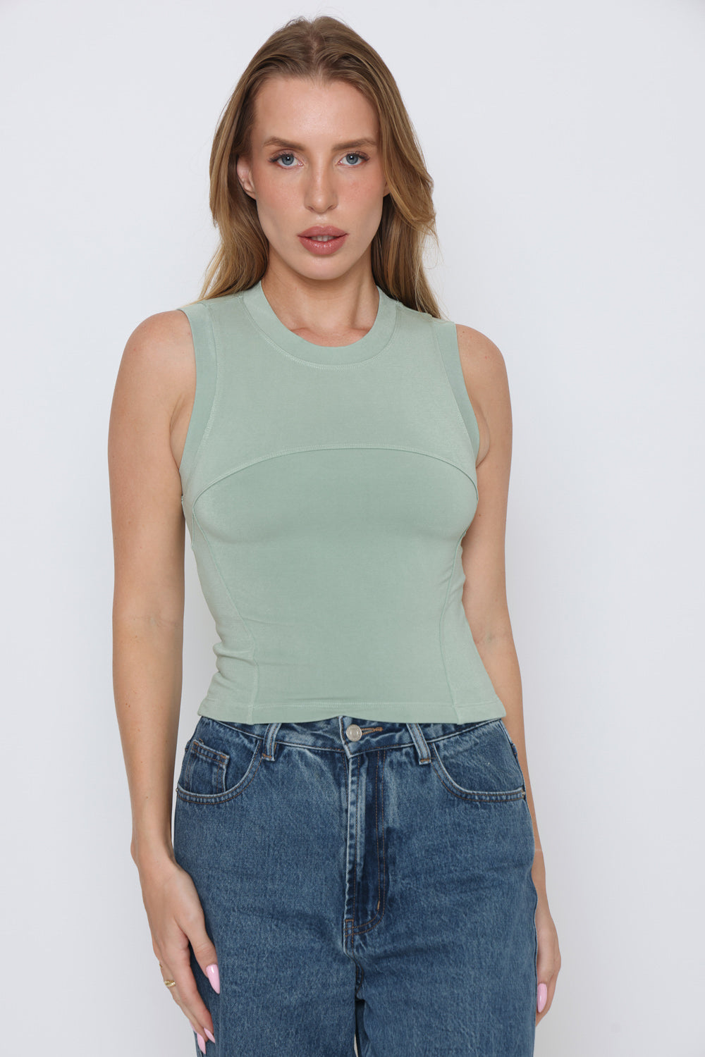 גופיה שילוב תפר בחזה לייקרה איכותית ורכה בגימור מוקפד המדגיש את קווי הגוף בצורה מחמיאה.