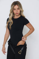 בגד גוף סגור שרוול קצר לייקרה רכה ואיכותית המבטיחה מראה יוקרתי לצד נוחות וגמישות מקסימלית.