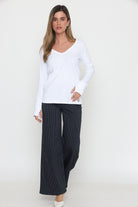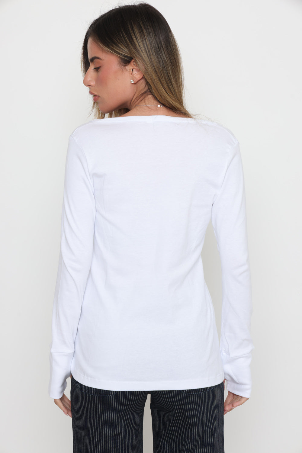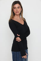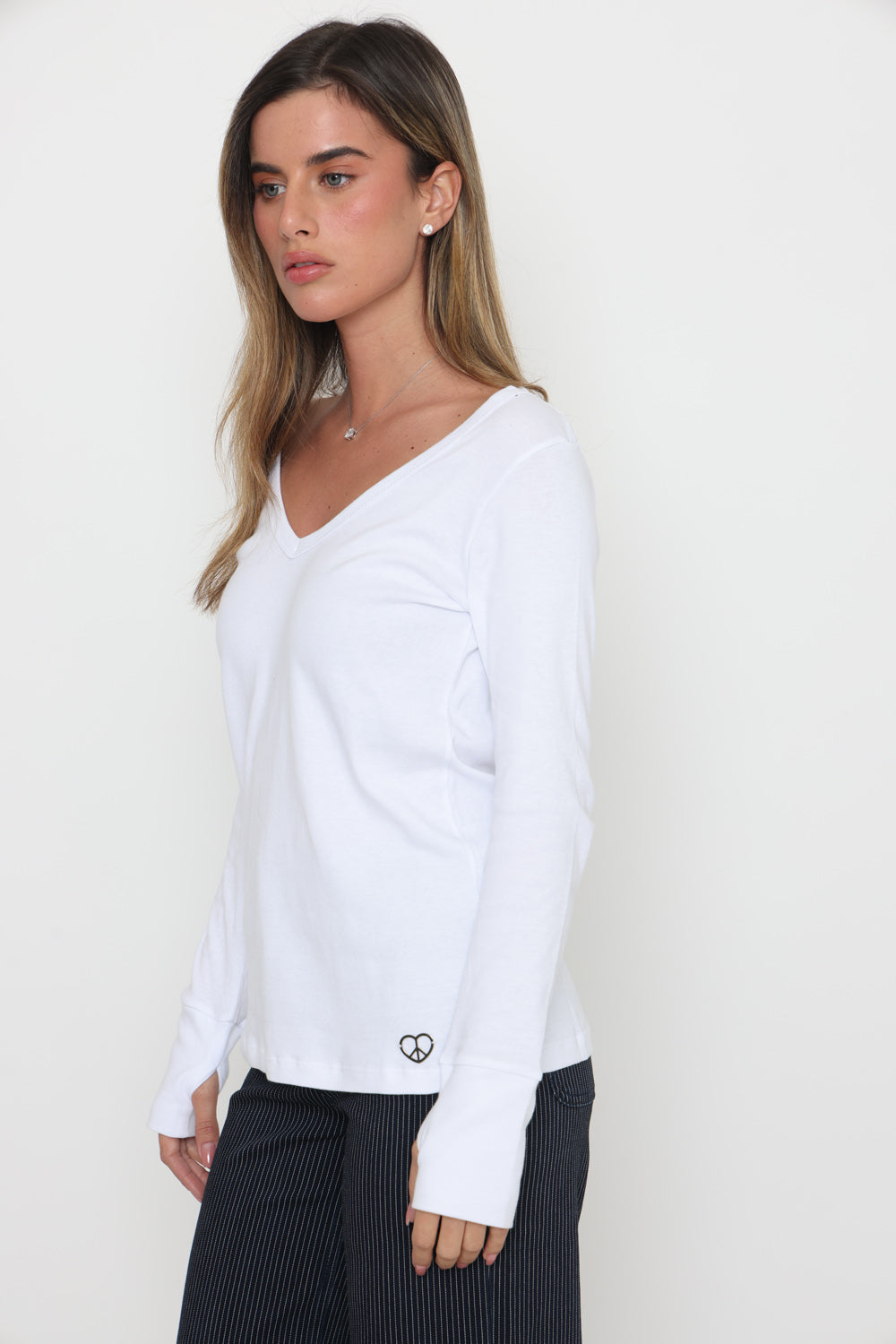 חולצה וי פתח לאצבעסוג בד: חולצה ריב ויהדוגמנית לובשת מידה XS