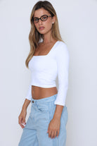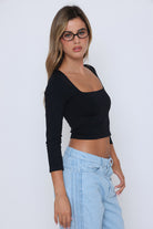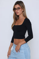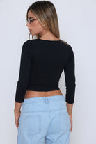 חולצה שרוול שבע שמניות פתח מרובע בטן