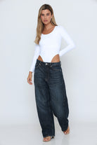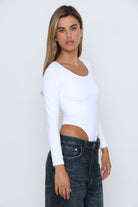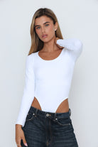 בגד גוף בגזרה גבוהה פתח עגול שרוול ארוך