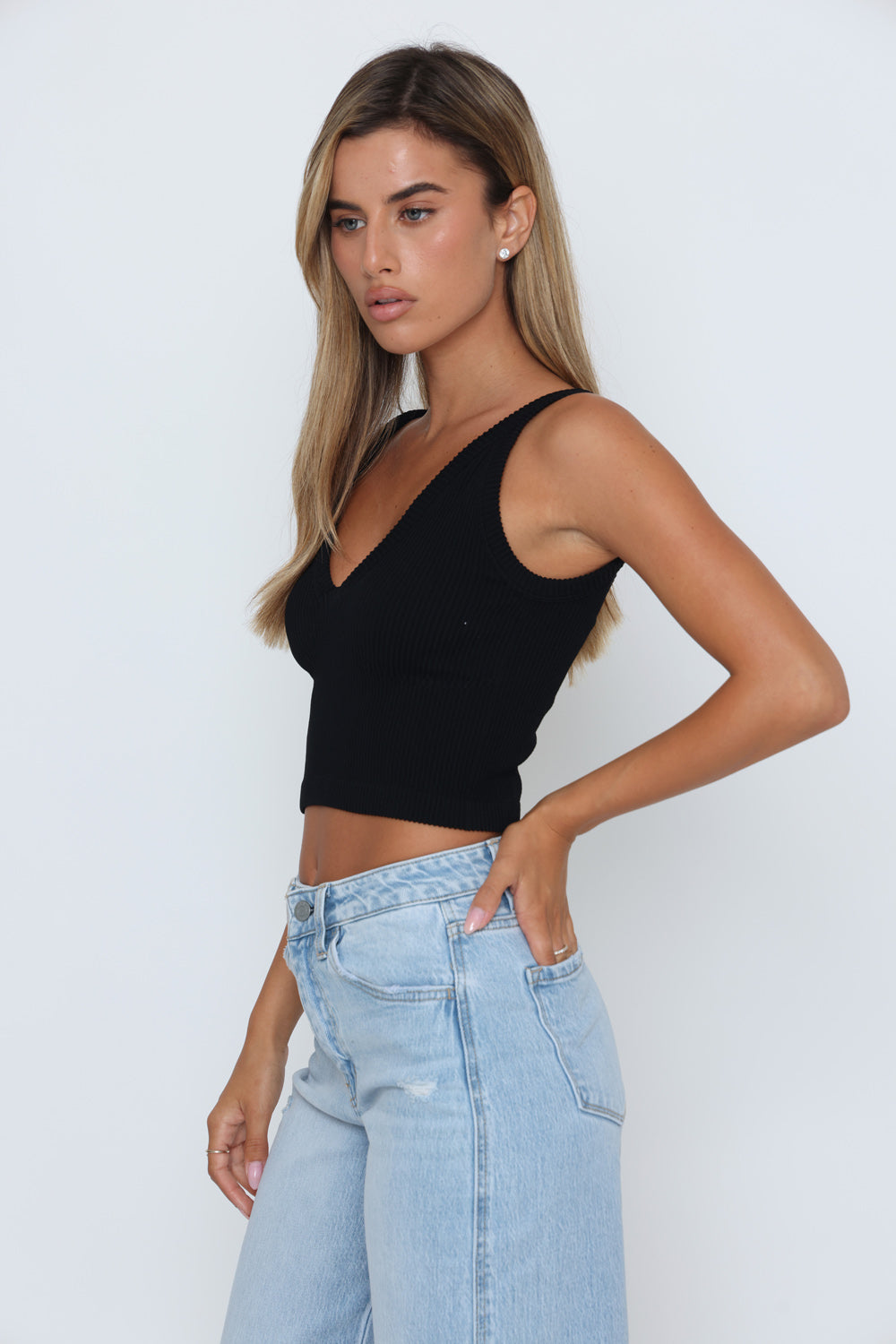 גופיה פתח וי עמוק גזרה מחטבת