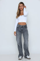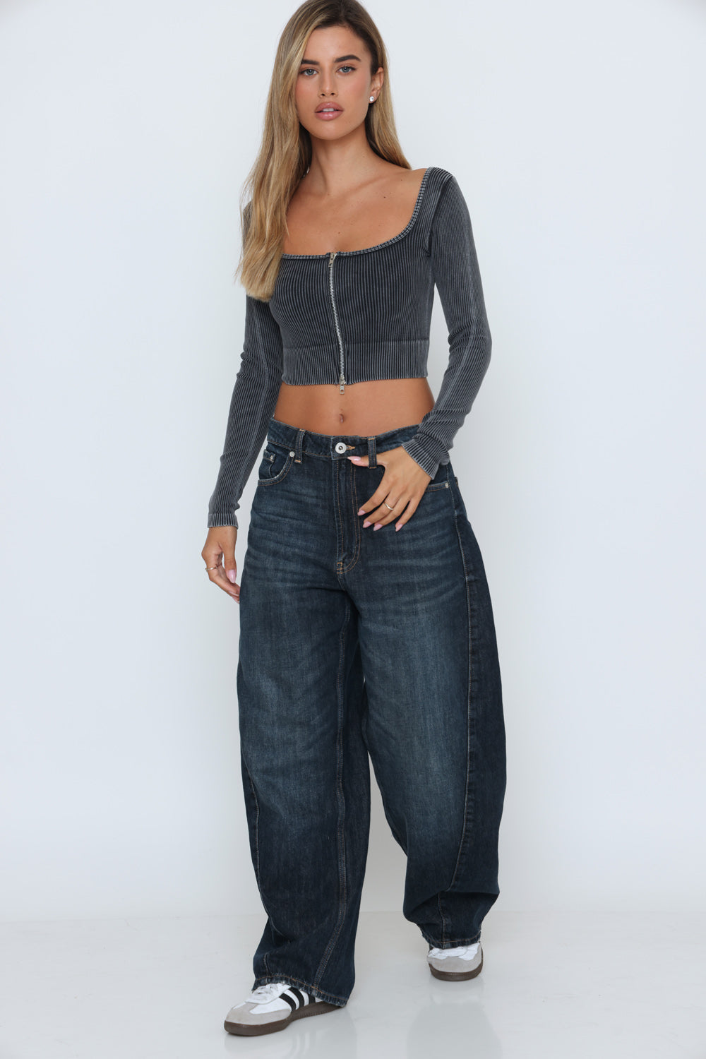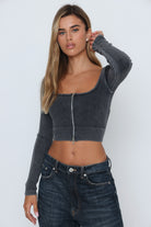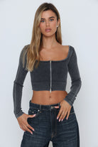 חולצה בטן שילוב דאבל רוכסן שרוול ארוך
