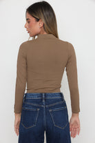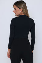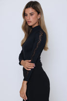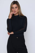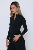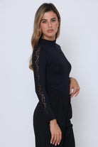 חולצה שרוול ארוך פס תחרה בשרוול שילוב רוכסן