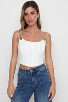 מחוך כתפיות שרשרת זהב הדוגמנית לובשת מידה S